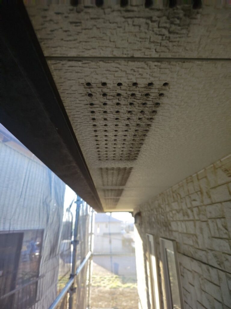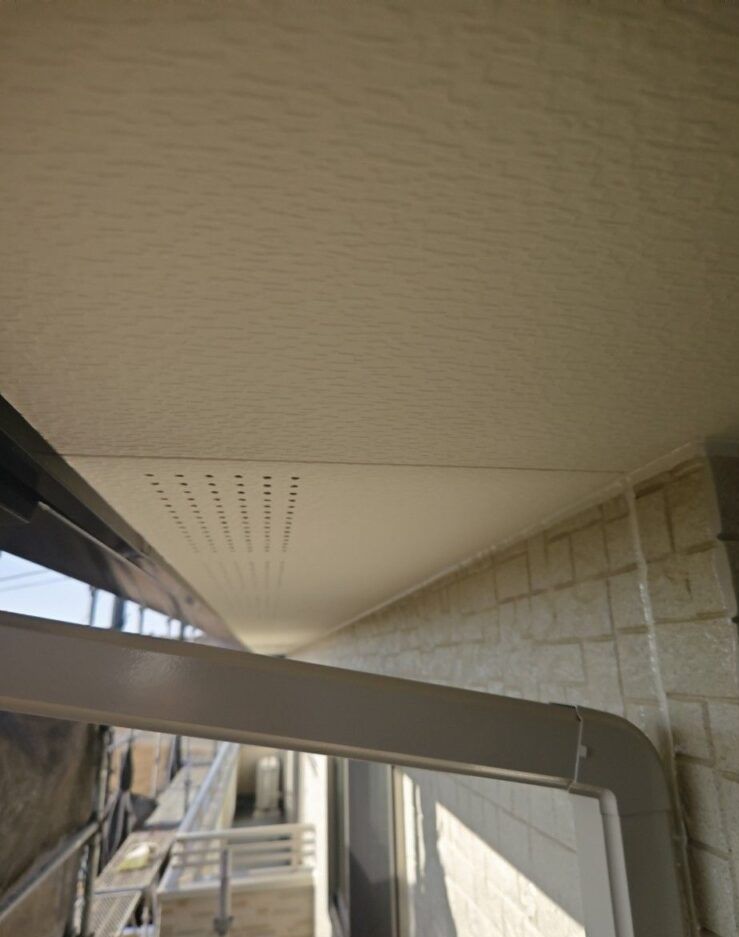 ↓軒天塗装後 使用材料はダイナミックノキエを使用いたしました。シーラー塗布乾燥後に色で2回塗りの計3回塗り。