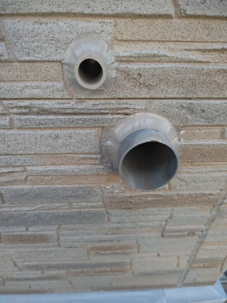 ↓ドレイン周りシーリング打設後 雨樋を外し隠れて見えない所もしっかりと工事させていただいております。
