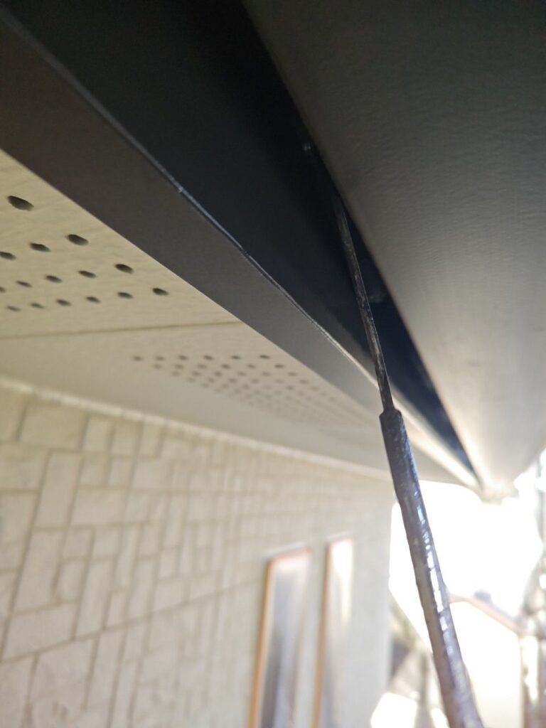 ↓破風板塗装中 狭く塗り辛い所もしっかり塗り残しがないように塗らせていただいております。