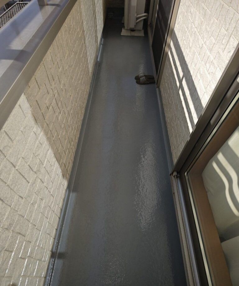 ↓FRP防水トップコート塗装後 ケレン、アセトンによる脱脂、専用プライマー、トップコートとしっかりと塗料が食いつくように一つ一つの工程を大切に作業させていただいております。